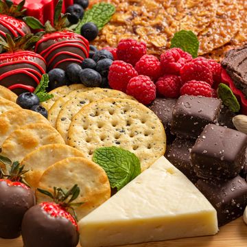 A shareable version filled with 2–3 cheeses, charcuterie, fruit, nuts, and sweet touches — great for date nights or thoughtful gifting.